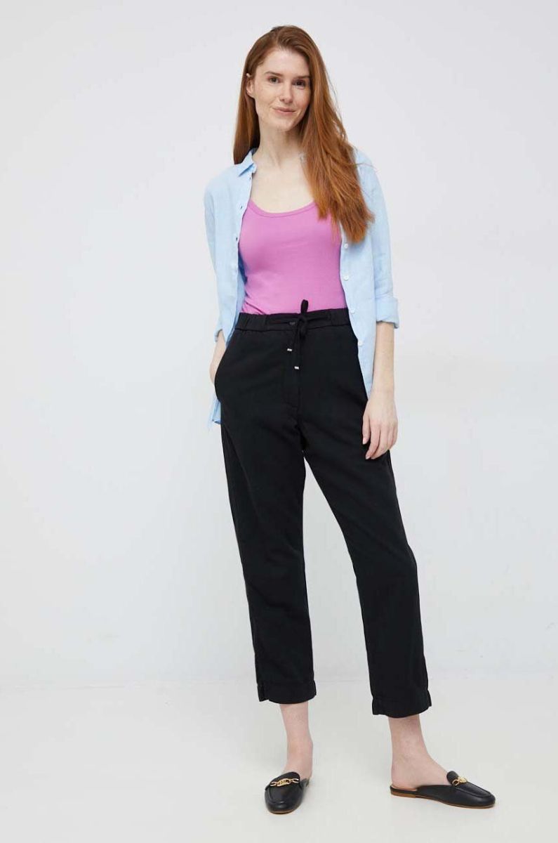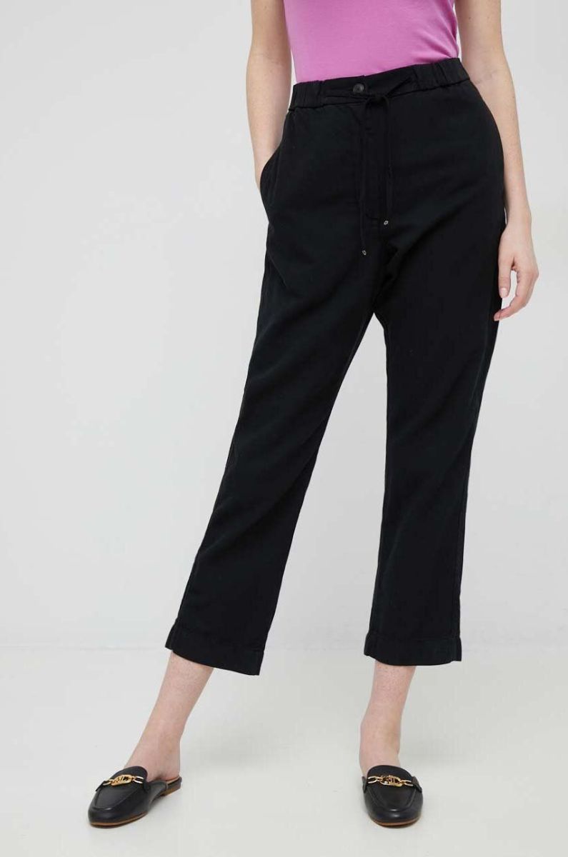 Штани з домішкою льону Tommy Hilfiger колір чорний пряме висока посадка