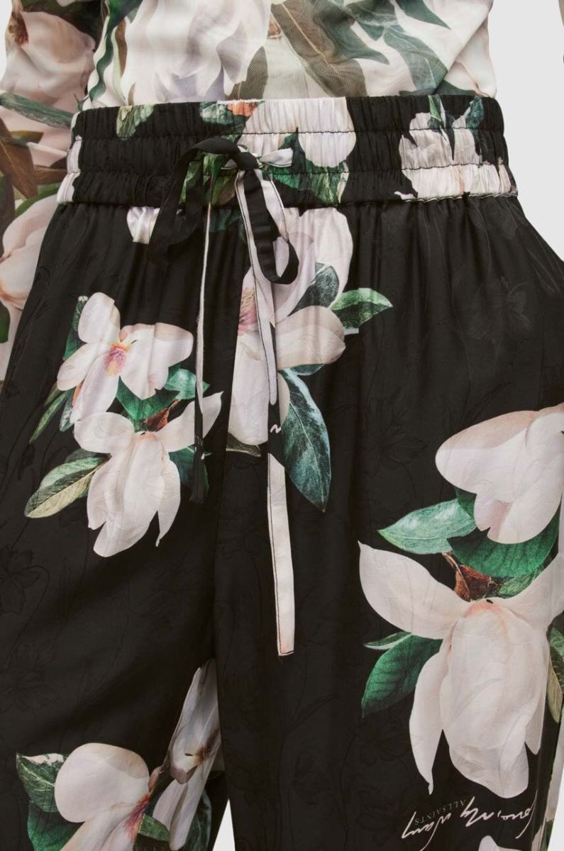 Штани з домішкою шовку AllSaints жіночі колір чорний кльош висока посадка