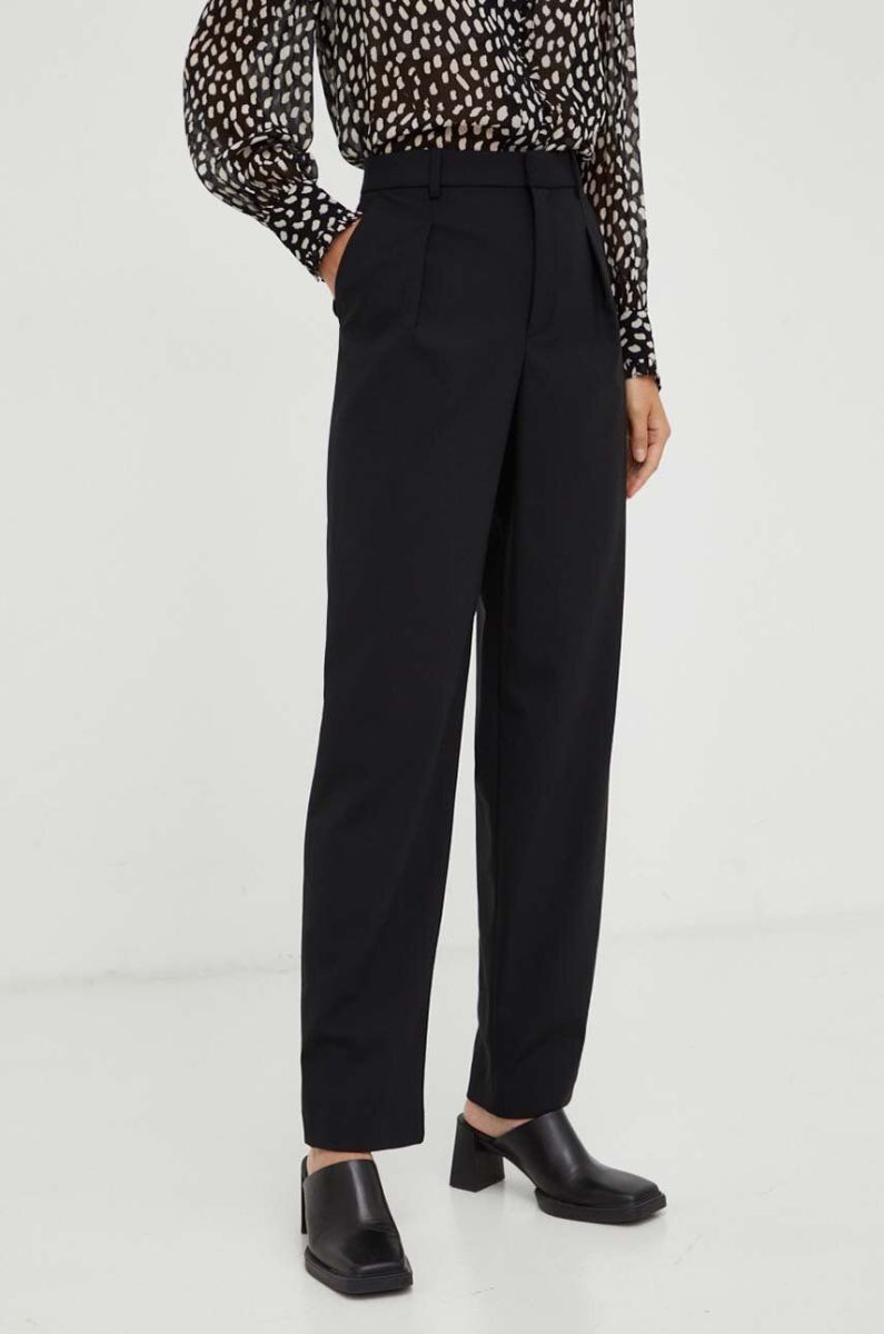 Штани з домішкою вовни BA&SH колір чорний пряме висока посадка