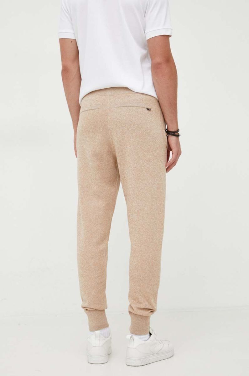Штани з домішкою вовни BOSS колір бежевий меланж