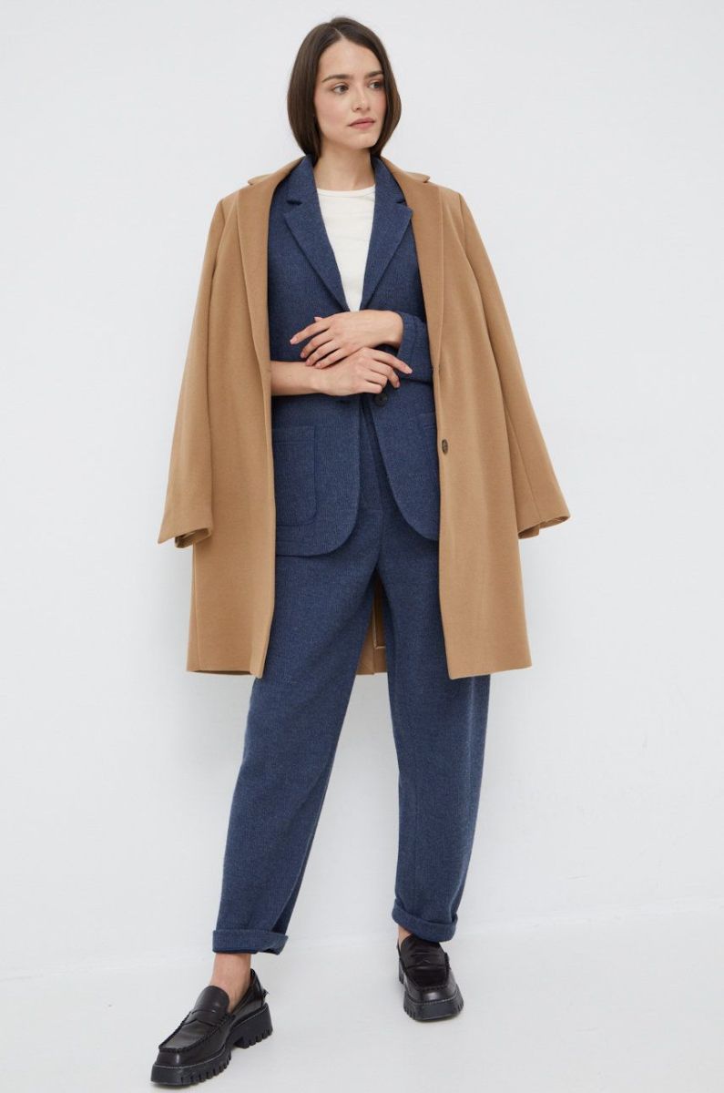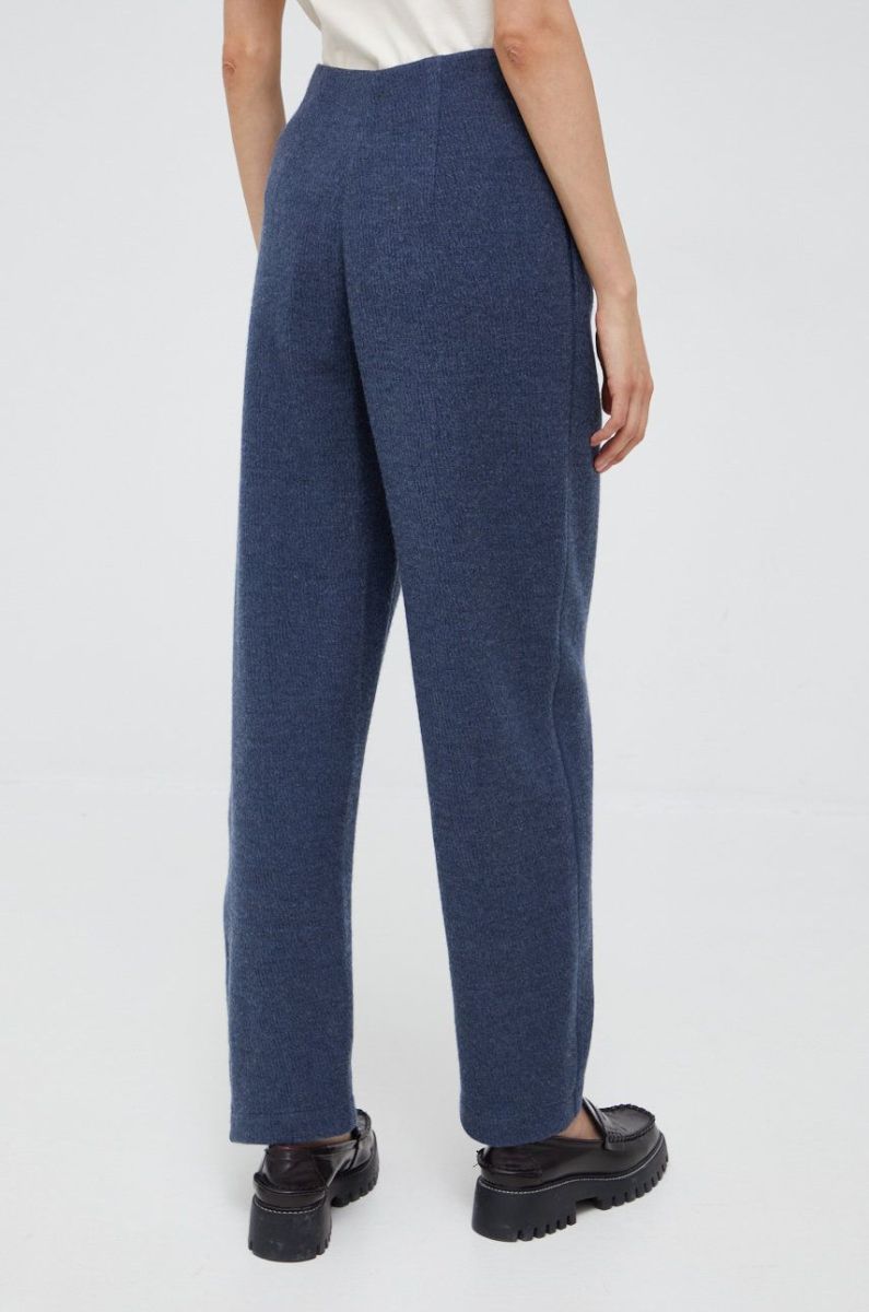 Штани з домішкою вовни Emporio Armani жіночі колір синій пряме висока посадка