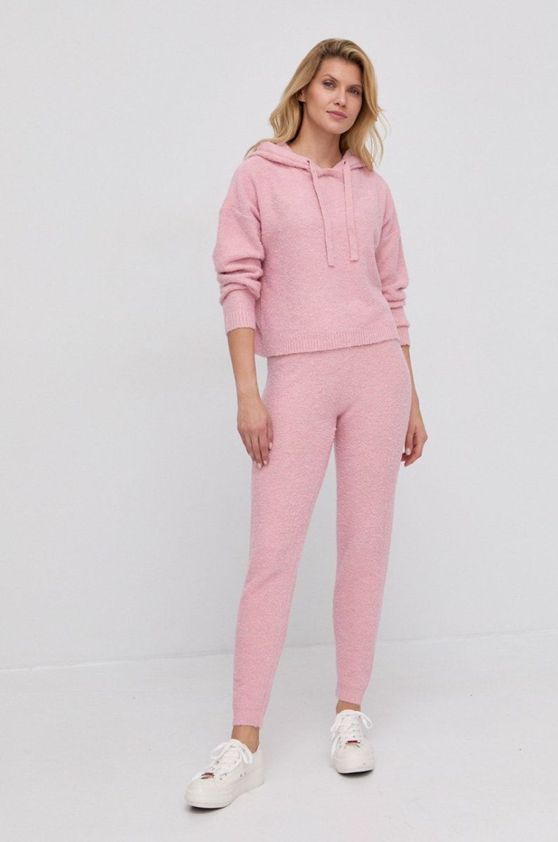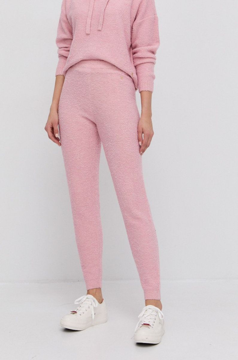 Штани з домішкою вовни Guess жіночі колір рожевий