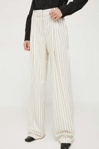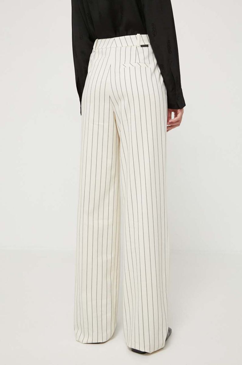 Штани з домішкою вовни HUGO колір бежевий широке висока посадка