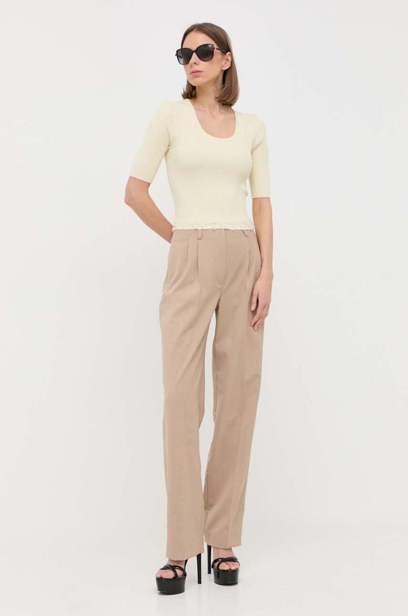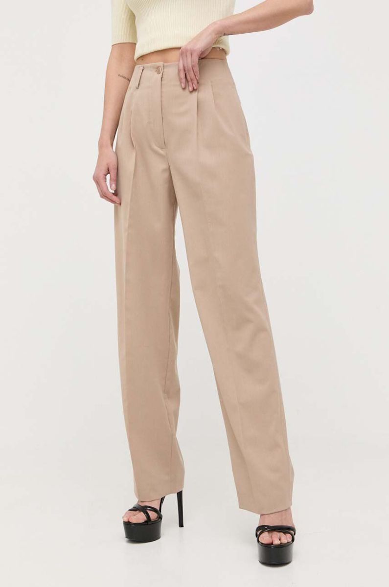 Штани з домішкою вовни Luisa Spagnoli жіночі колір бежевий пряме висока посадка (2971376)