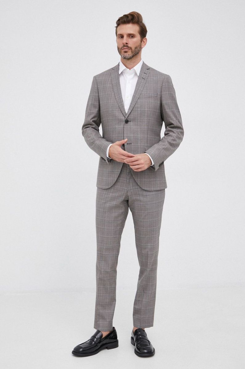 Штани з домішкою вовни Tiger Of Sweden чоловічі колір сірий облягаюче