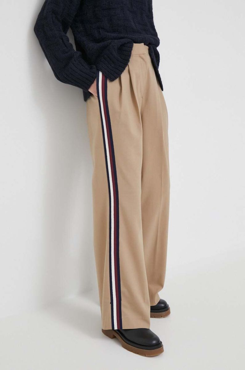 Штани з домішкою вовни Tommy Hilfiger колір бежевий широке висока посадка