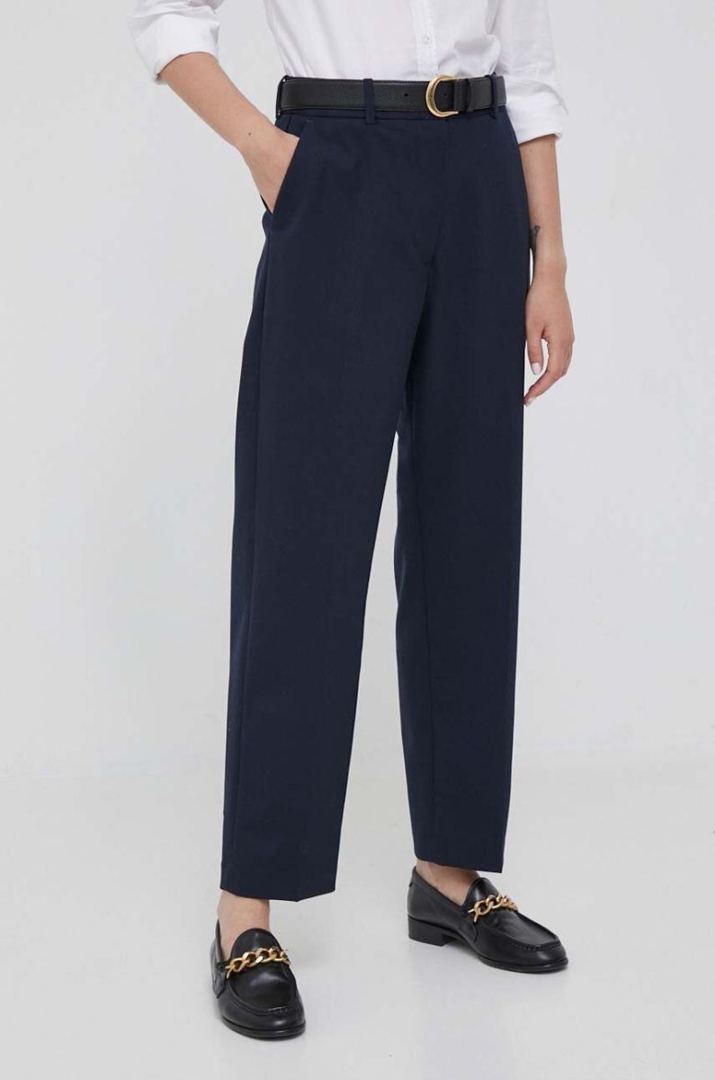 Штани з домішкою вовни Tommy Hilfiger колір синій фасон chinos висока посадка