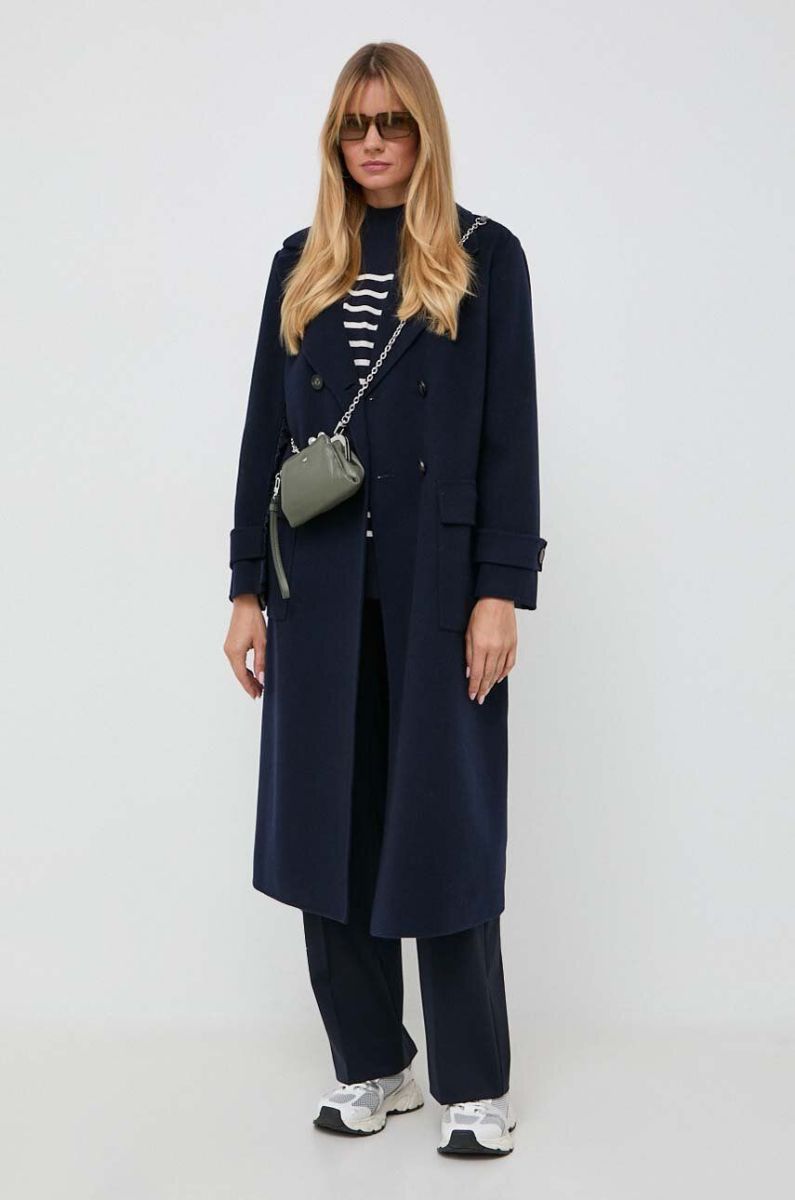 Штани з домішкою вовни Weekend Max Mara x Kate Phelan колір синій прямі висока посадка