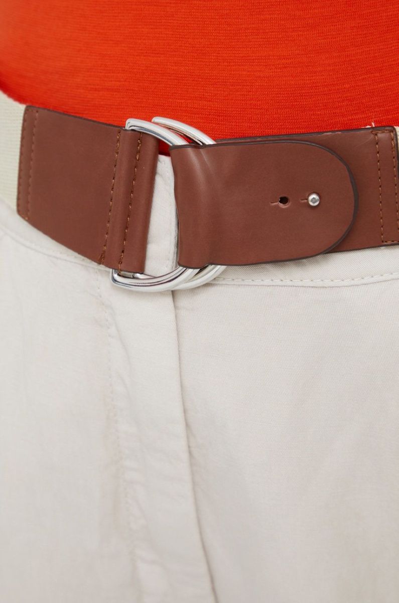 Штани з льоном Emporio Armani жіночі колір бежевий пряме висока посадка