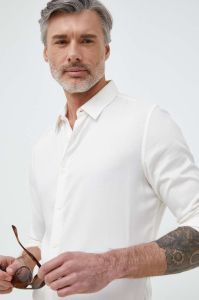 Сорочка Guess чоловіча колір бежевий slim класичний комір