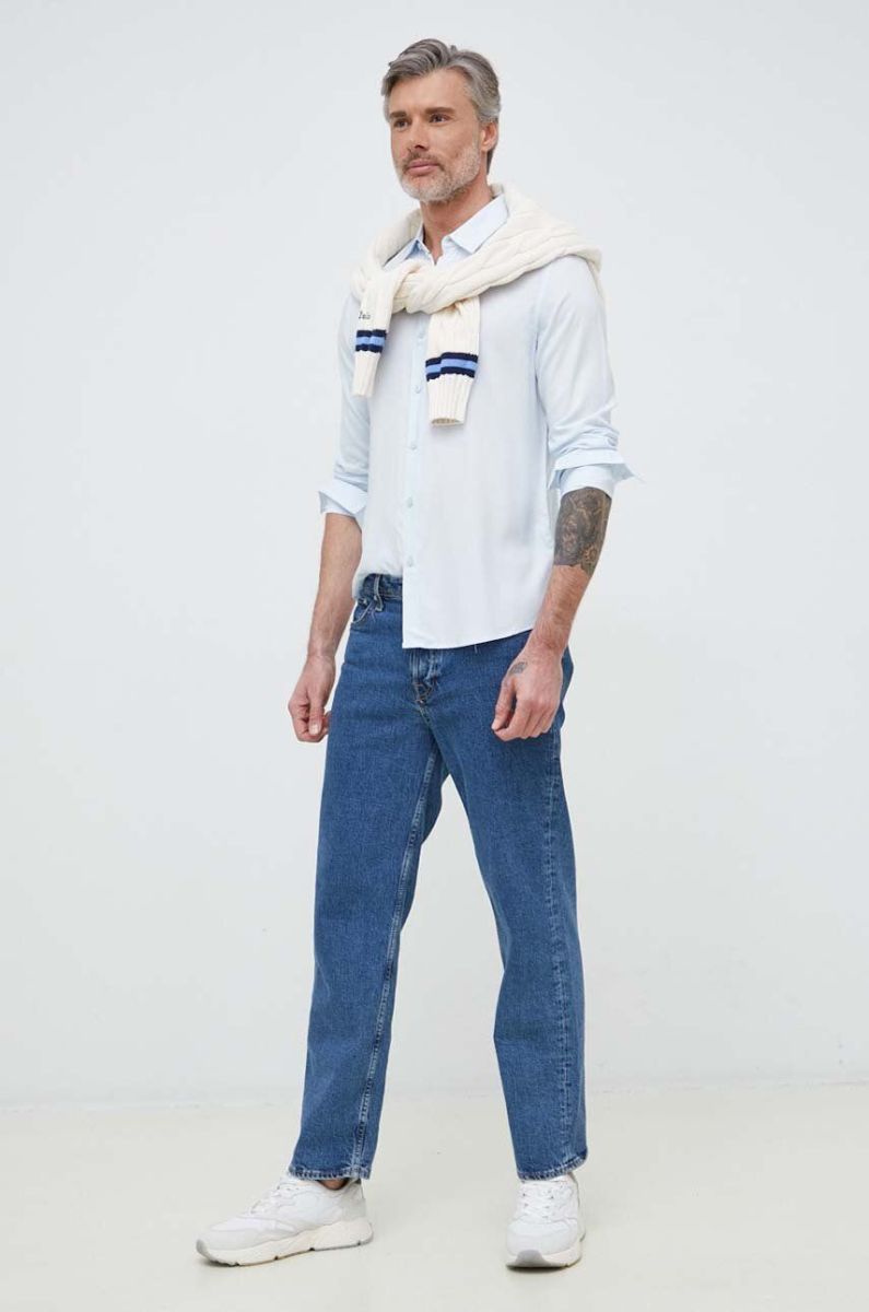 Сорочка Guess чоловіча slim класичний комір колір блакитний (3022399)
