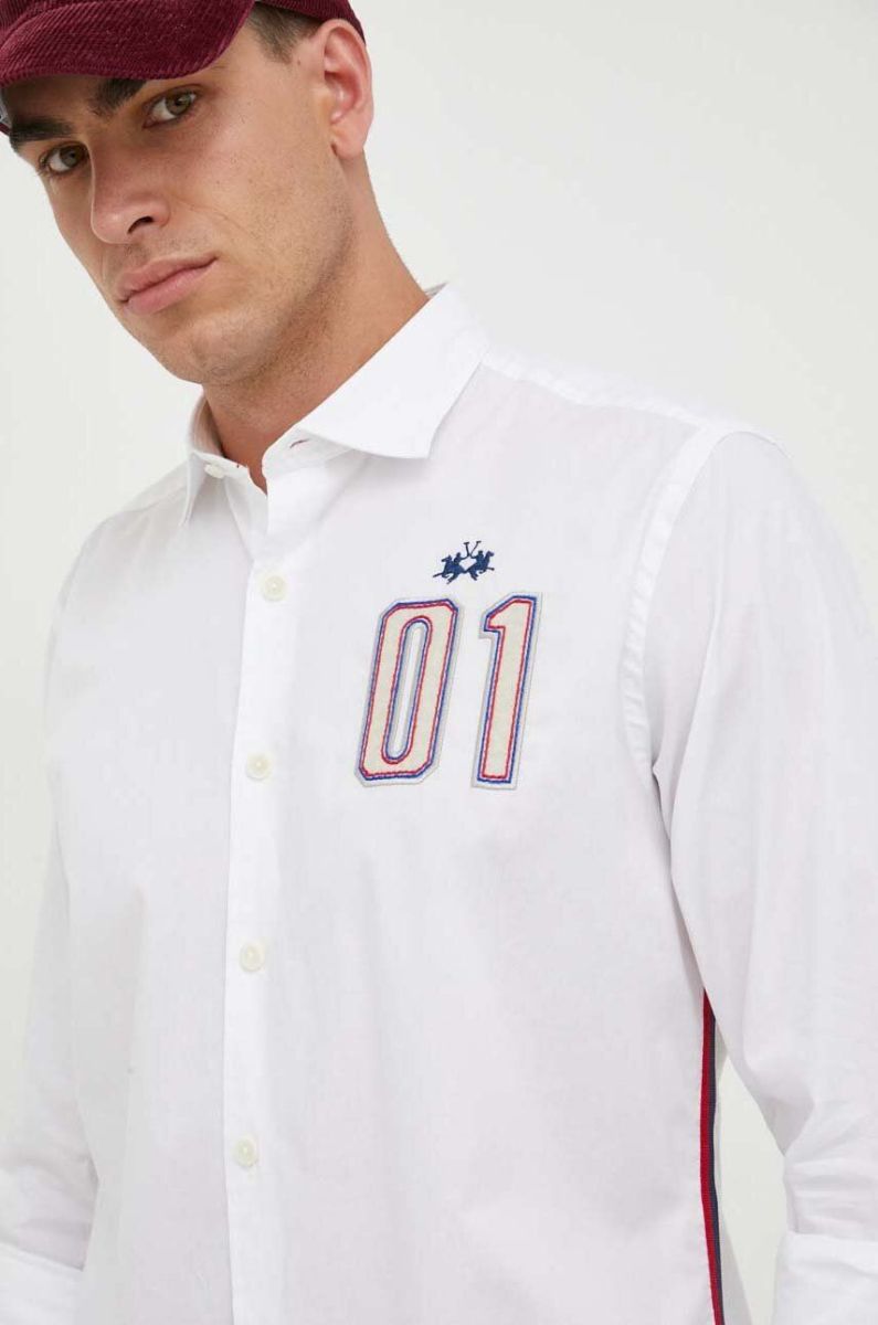 Сорочка La Martina чоловіча колір білий regular з італійським коміром