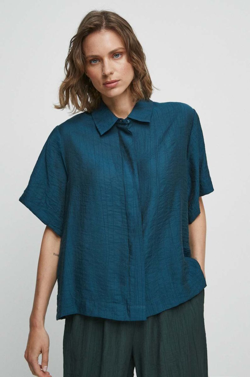 Сорочка Medicine жіноча колір бірюзовий relaxed класичний комір (3375897)