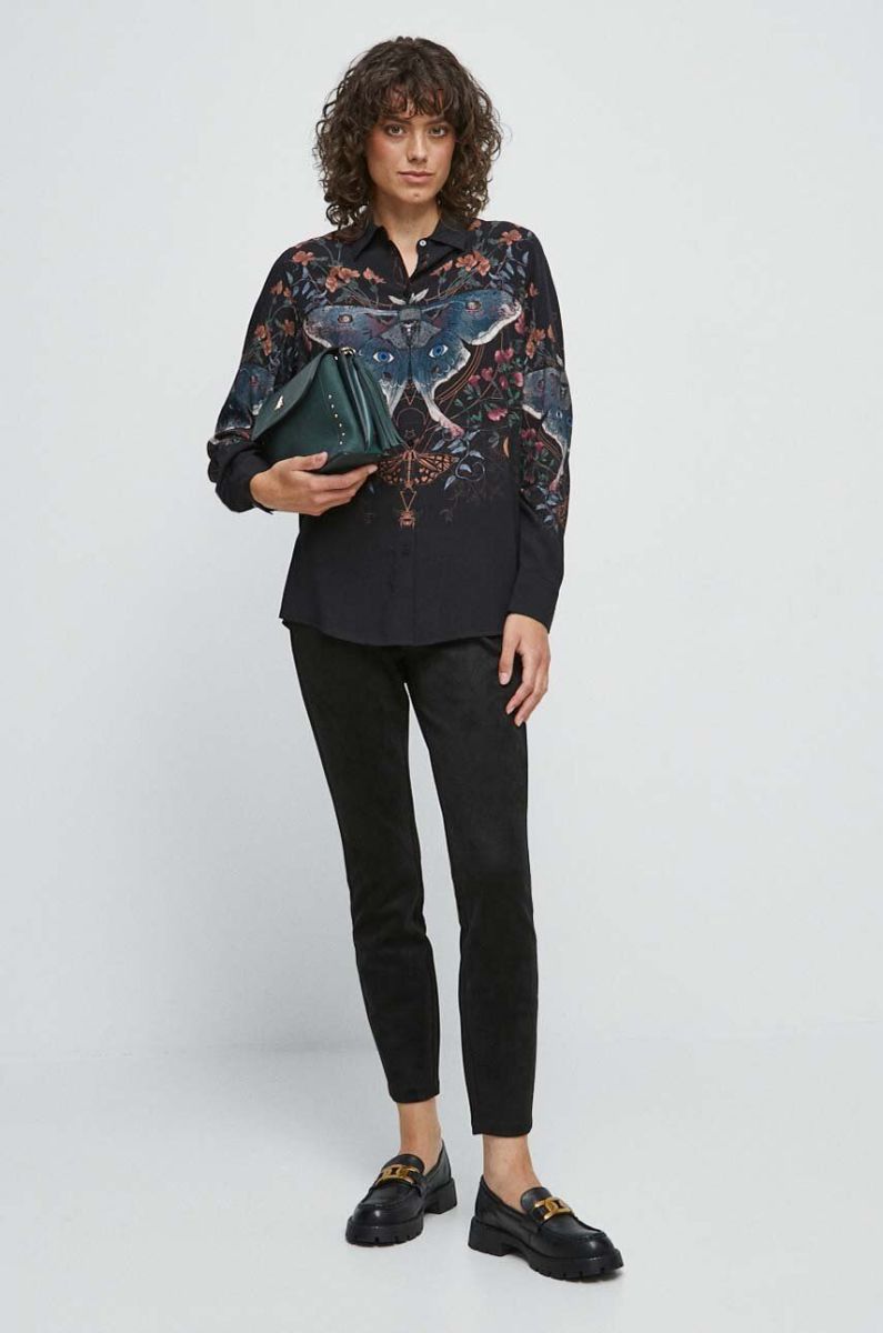 Сорочка Medicine жіноча колір чорний relaxed класичний комір (3484748)