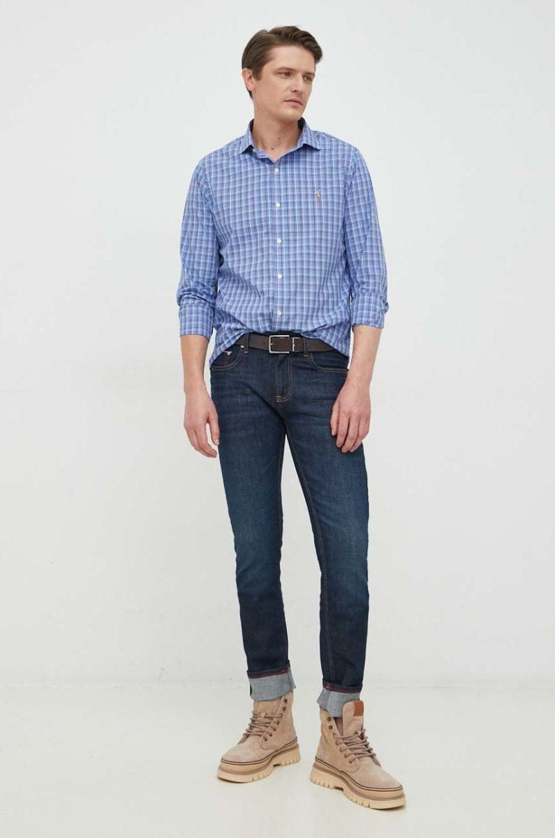 Сорочка Polo Ralph Lauren чоловіча slim класичний комір колір блакитний