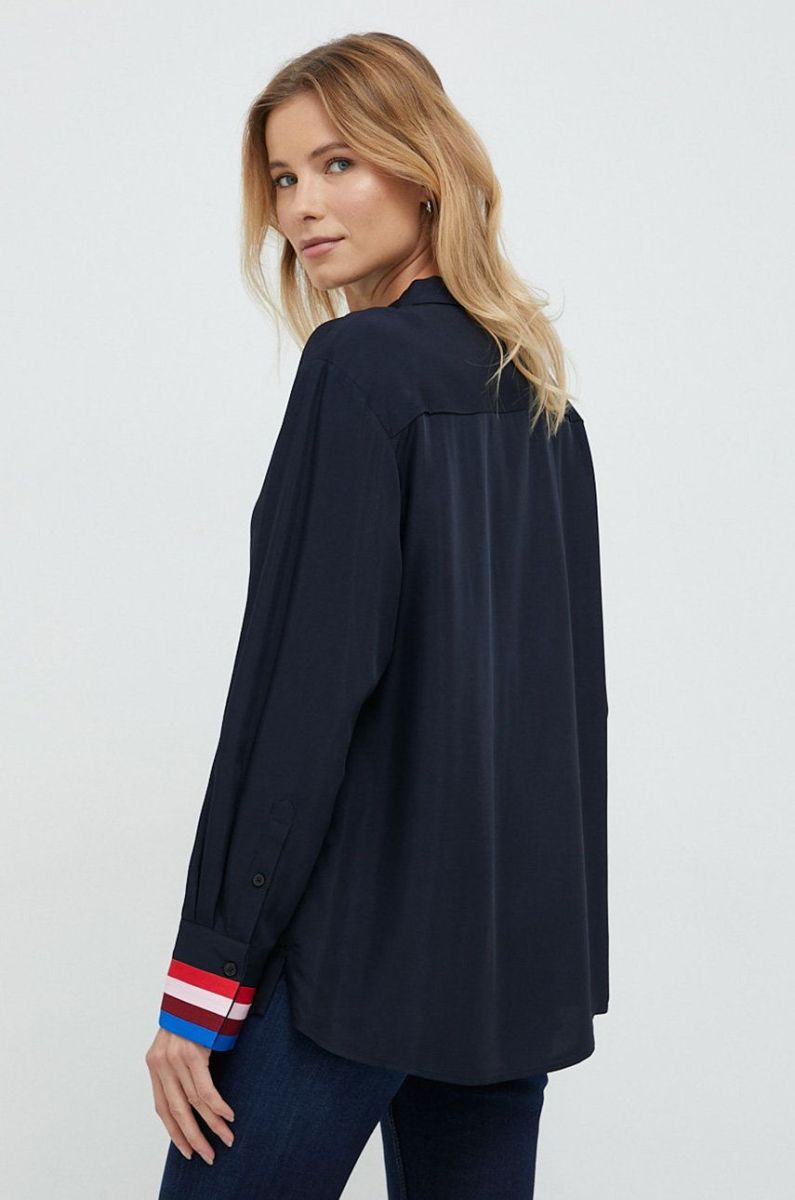Сорочка Tommy Hilfiger жіноча колір синій relaxed класичний комір (2856414)