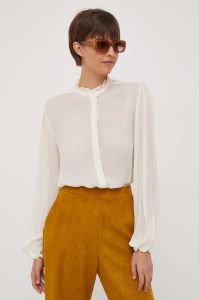 Сорочка United Colors of Benetton жіноча колір бежевий regular зі стійкою