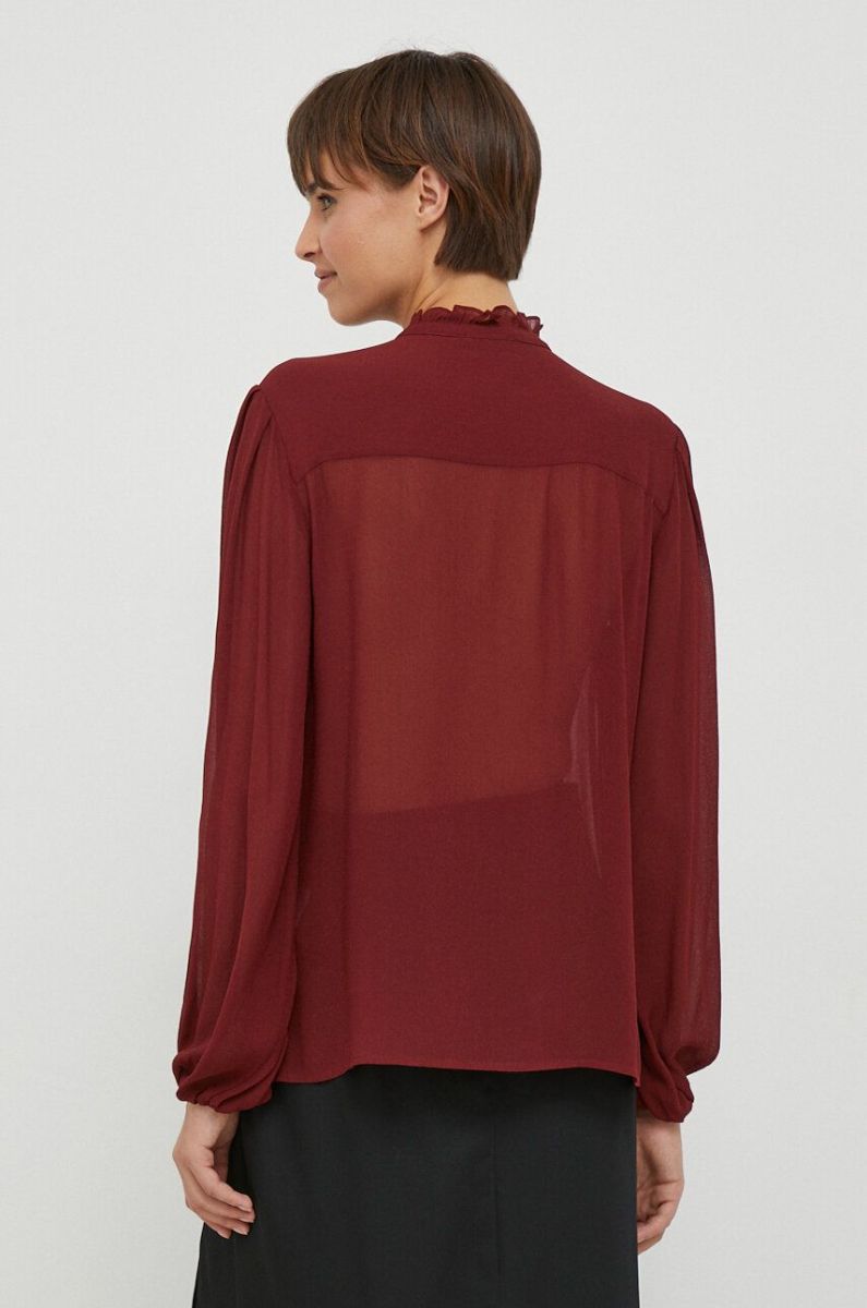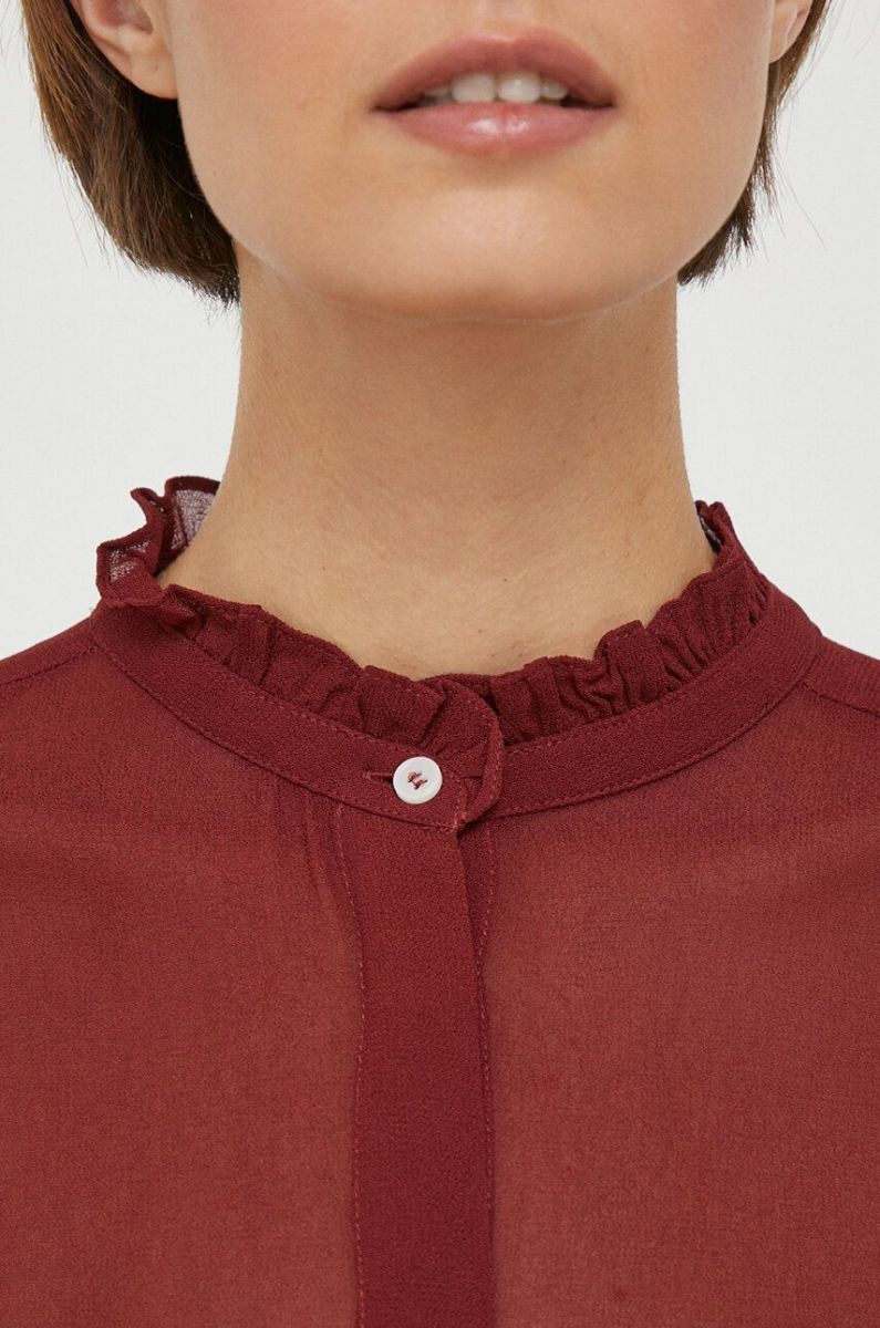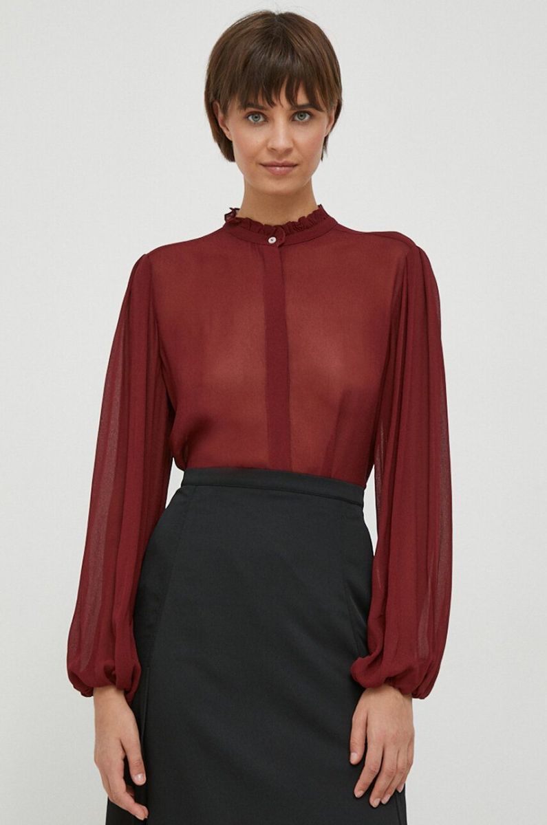 Сорочка United Colors of Benetton жіноча колір бордовий regular зі стійкою