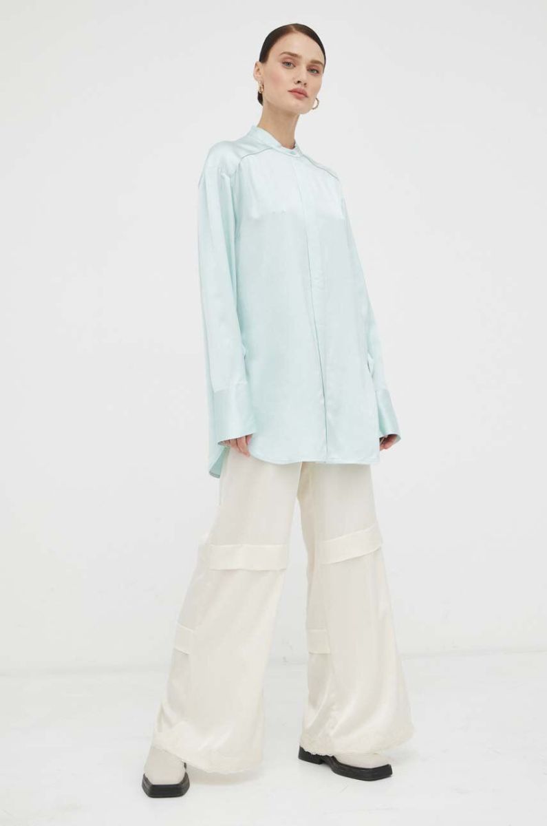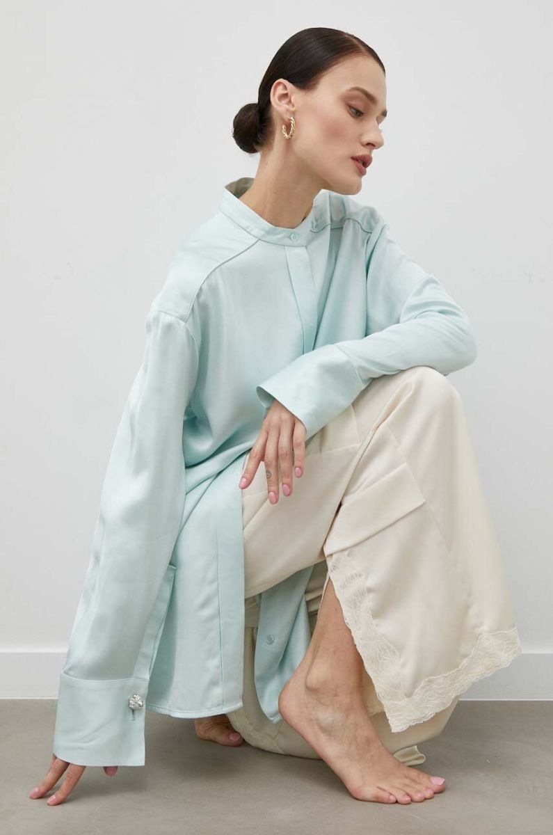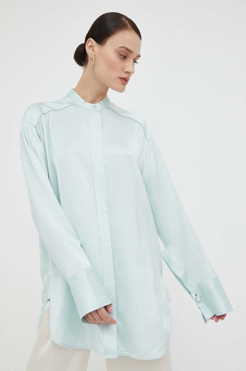 Сорочка з домішкою льону Day Birger et Mikkelsen relaxed колір блакитний
