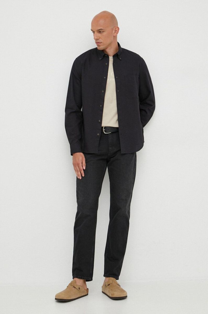 Сорочка з домішкою льону Marc O'Polo колір чорний regular комір button-down