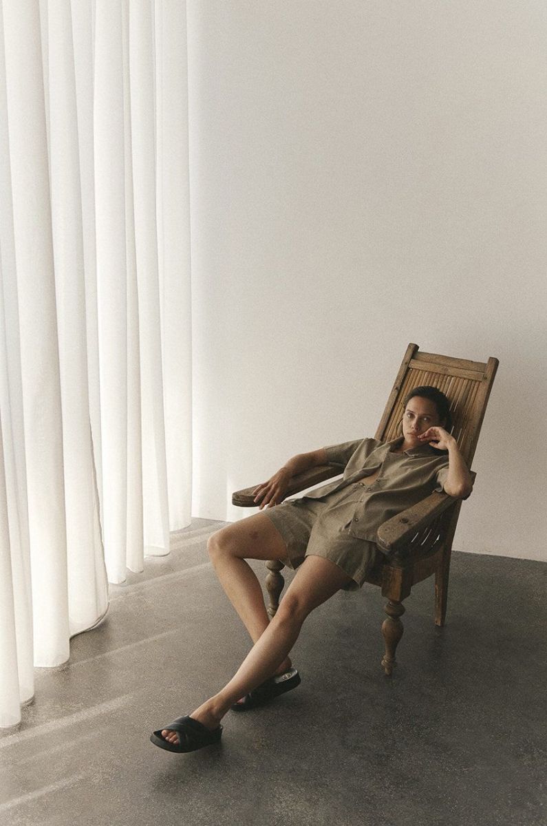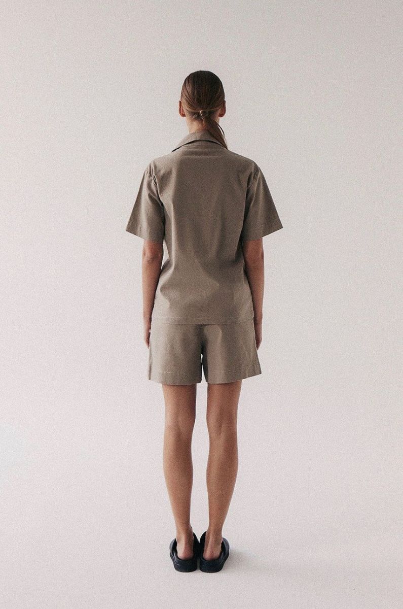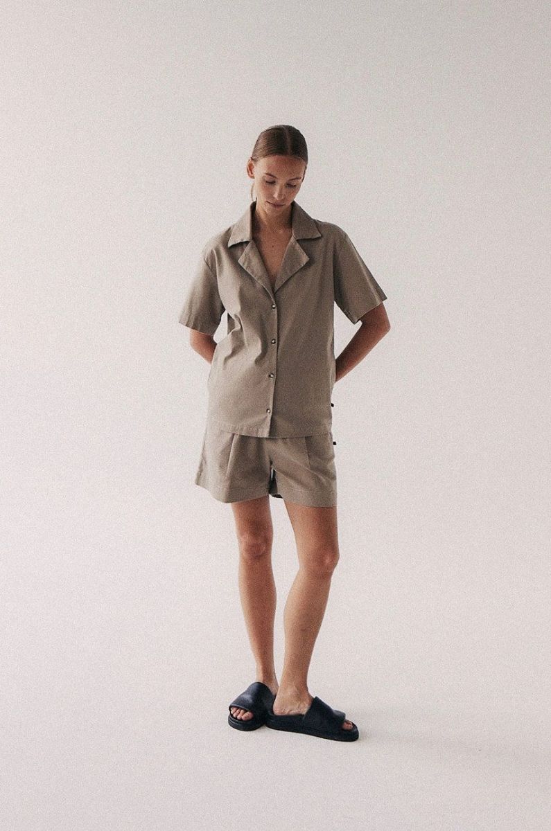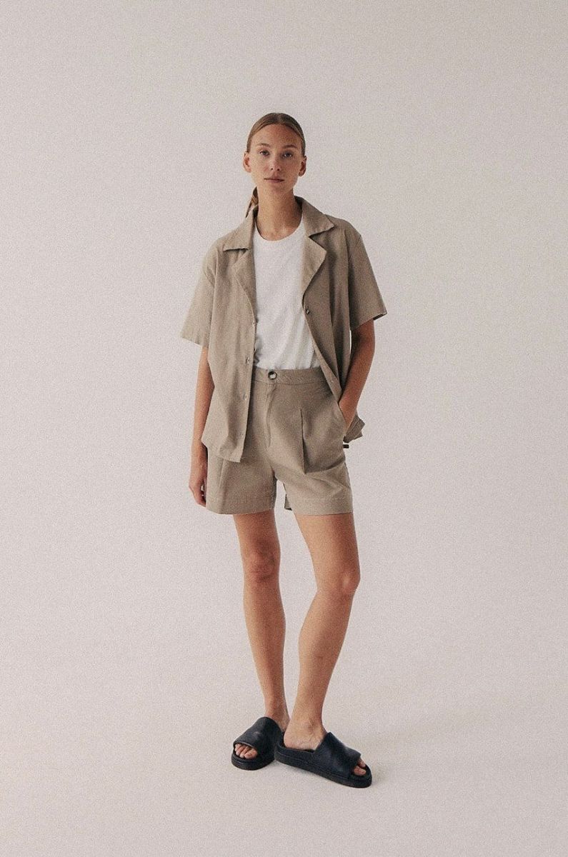 Сорочка з домішкою льону MUUV. Koszula Z Kr?tkim R?kawem Poche жіноча колір бежевий relaxed класичний комір
