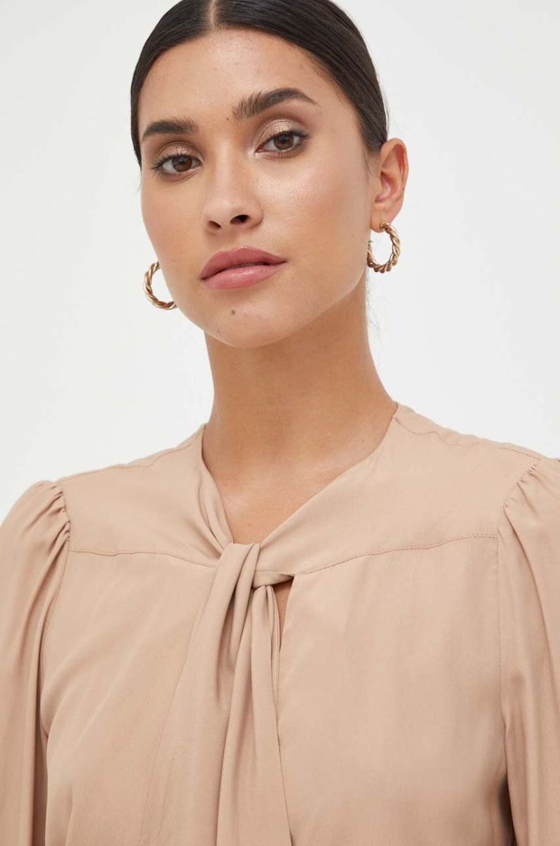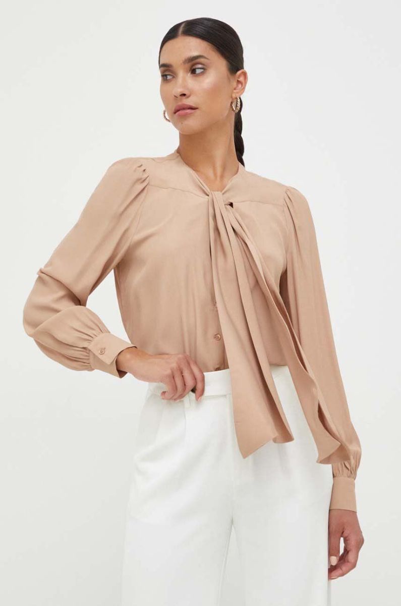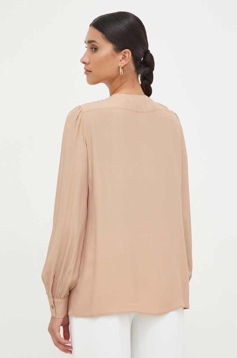 Сорочка з домішкою шовку Pinko колір бежевий regular в'язане декольте (3532406)