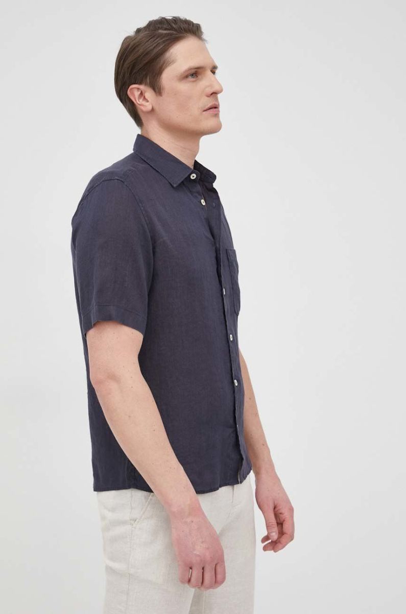 Сорочка з льону Marc O'Polo чоловіча колір синій regular класичний комір