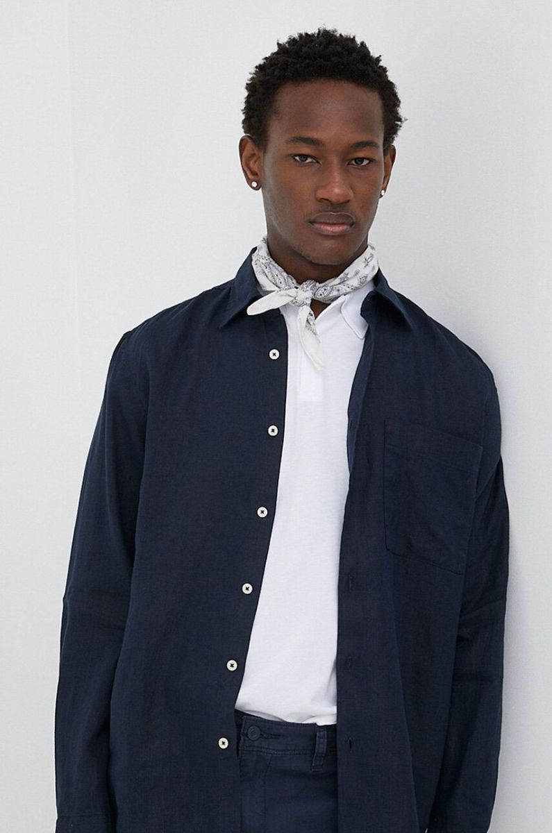 Сорочка з льону Marc O'Polo колір синій regular класичний комір (3166010)