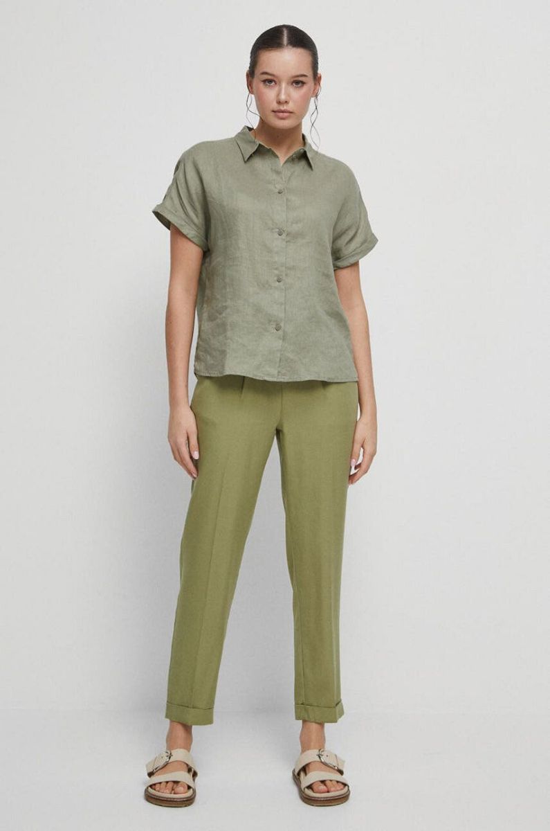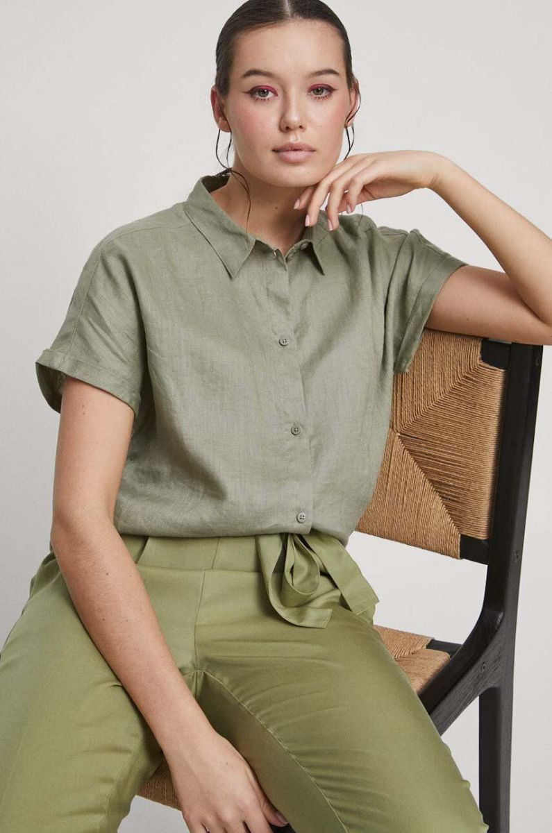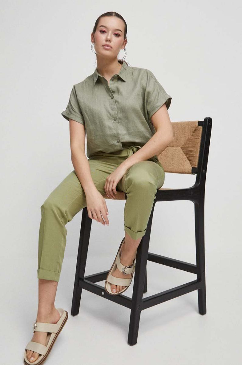 Сорочка з льону Medicine колір зелений regular класичний комір (3281272)