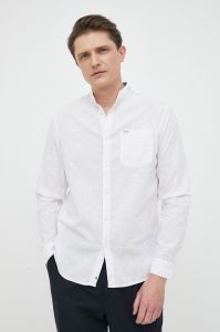 Сорочка з льону Pepe Jeans колір білий regular зі стійкою
