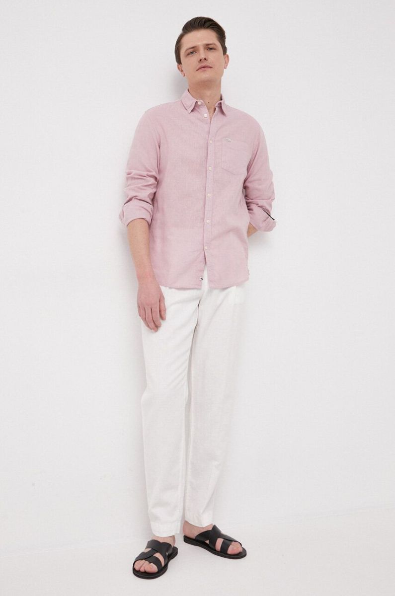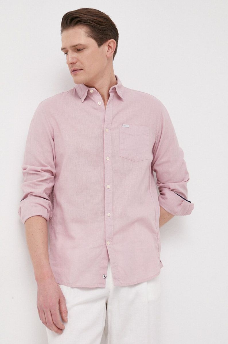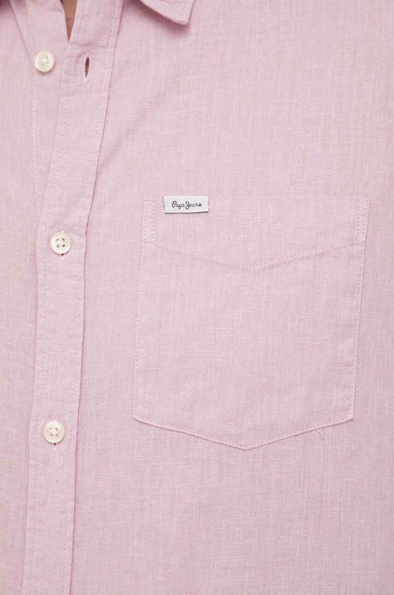 Сорочка з льону Pepe Jeans колір рожевий regular класичний комір