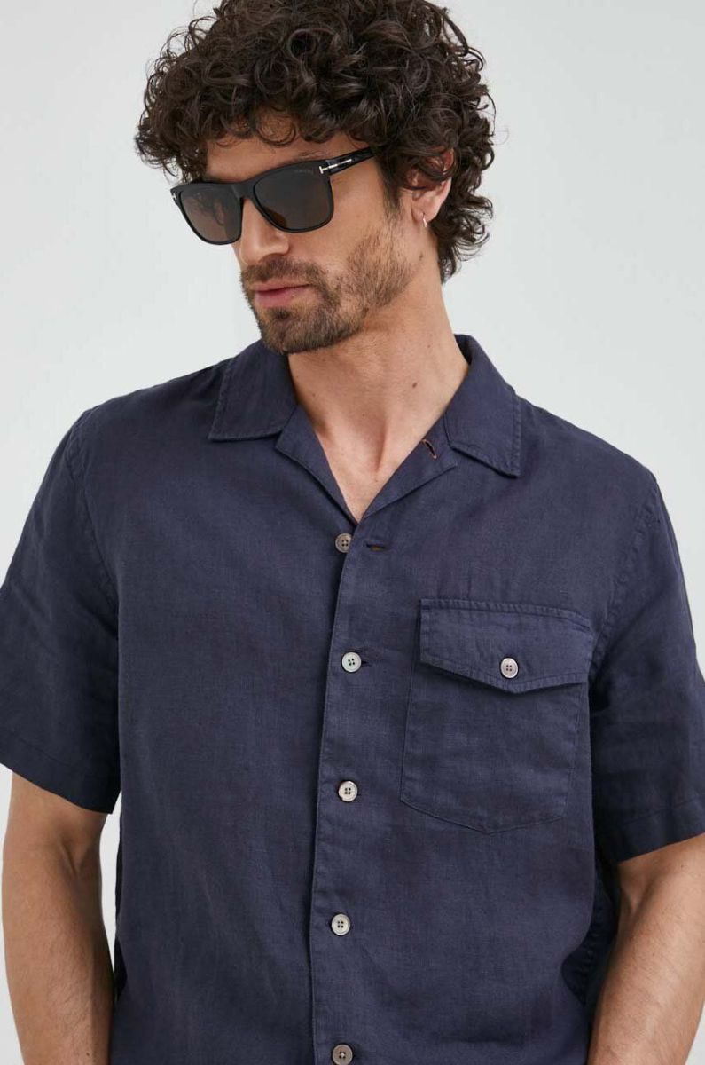 Сорочка з льону PS Paul Smith колір синій regular класичний комір