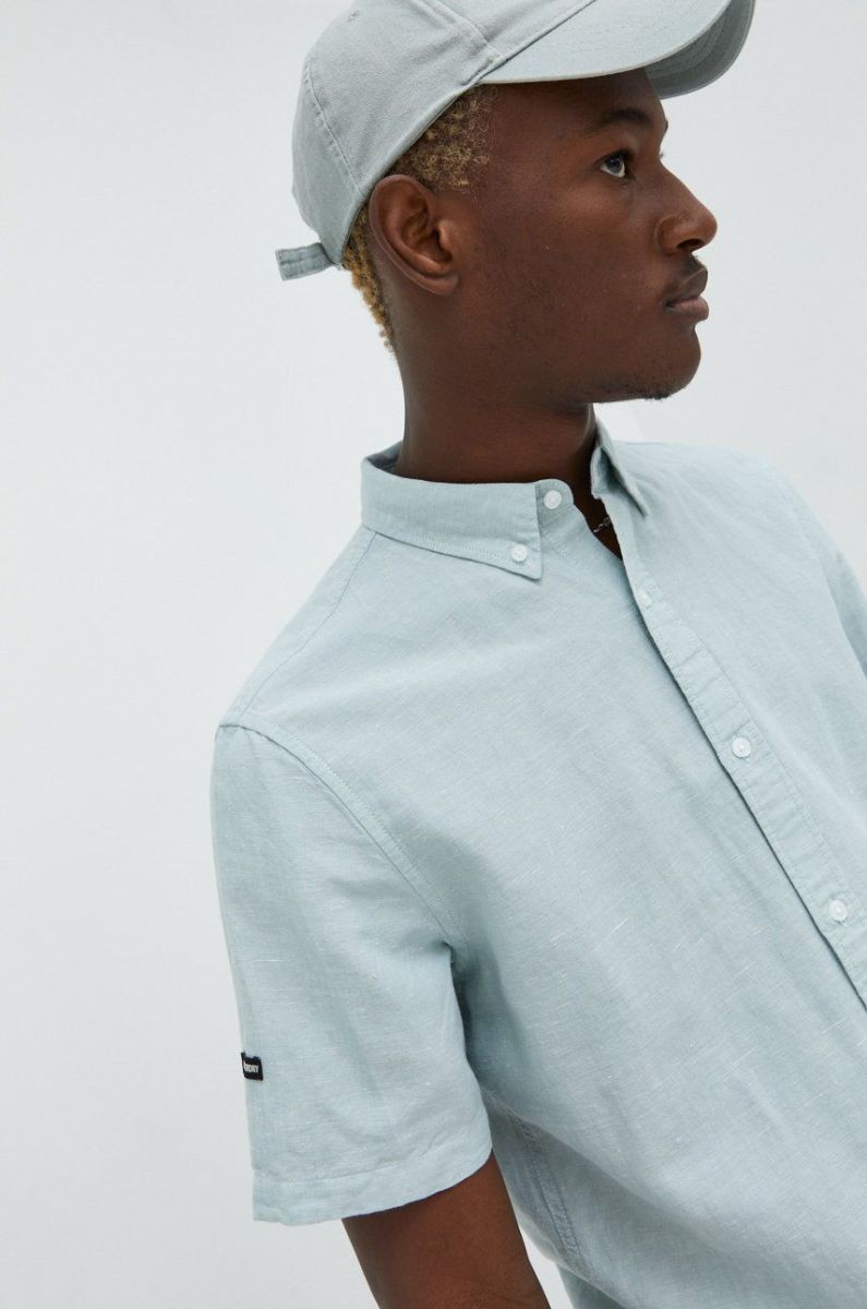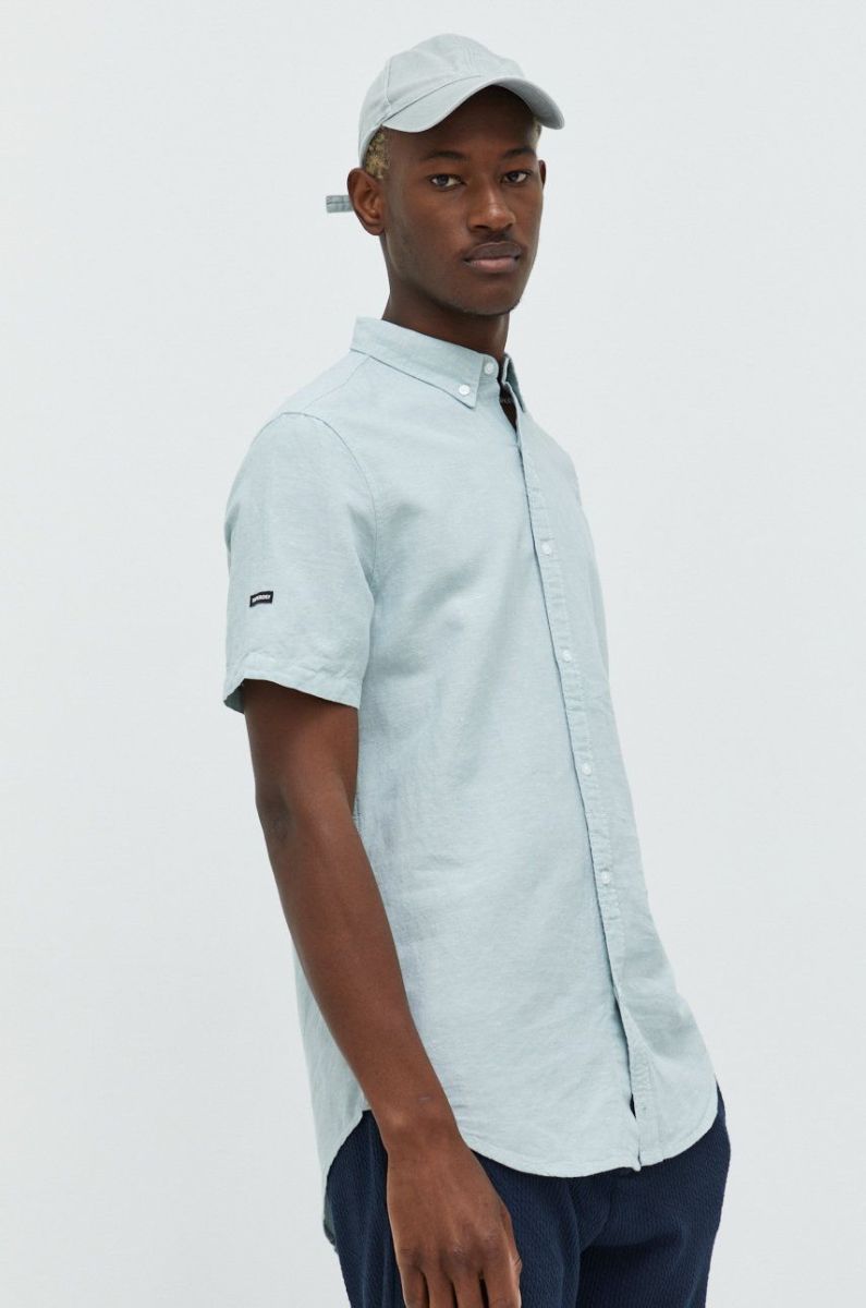 Сорочка з льону Superdry чоловіча колір зелений regular