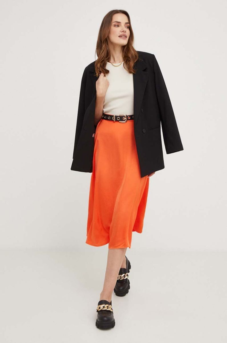 Спідниця Answear Lab колір помаранчевий midi розкльошена