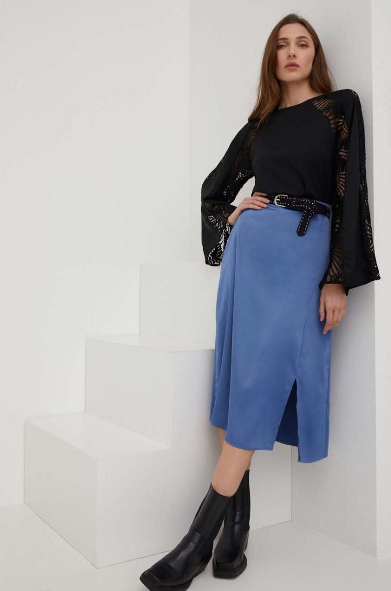 Спідниця Answear Lab midi розкльошена колір блакитний (3217518)