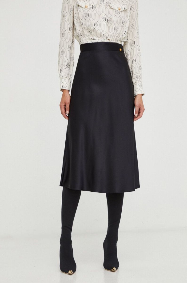 Спідниця Elisabetta Franchi колір чорний midi розкльошена