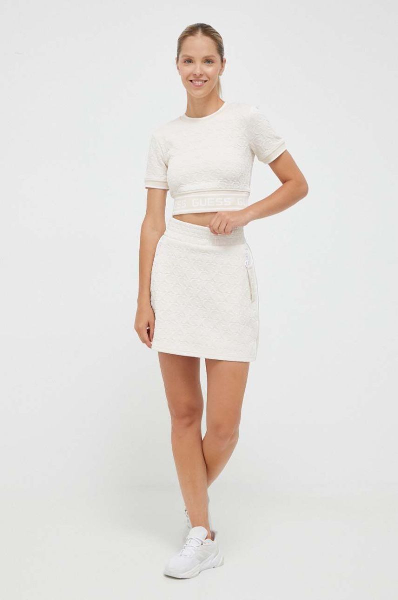 Спідниця Guess колір бежевий mini розкльошена (3459288)