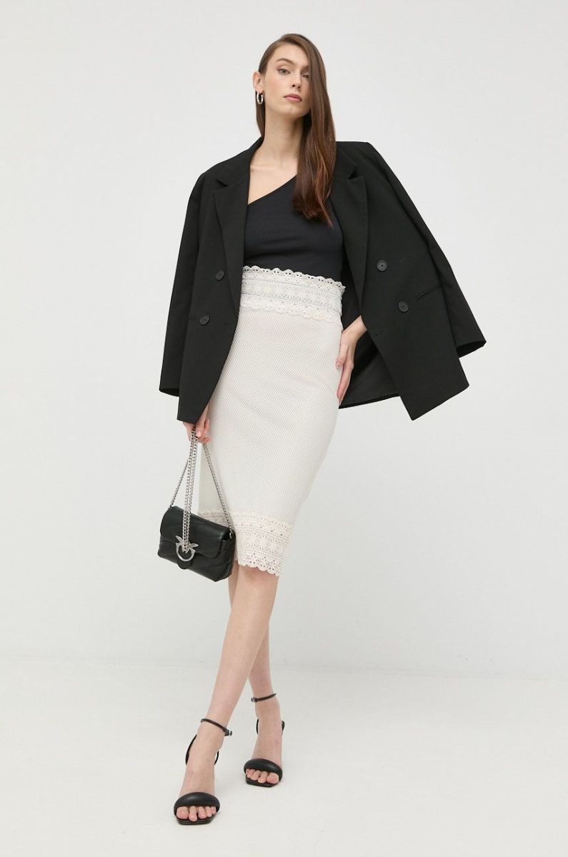 Спідниця Pinko колір бежевий midi пряма