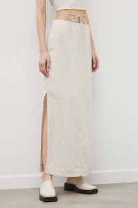Спідниця з домішкою льону Gestuz Malou колір бежевий maxi пряма