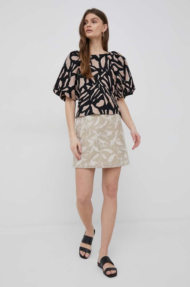 Спідниця з домішкою льону Pennyblack колір бежевий mini пряма