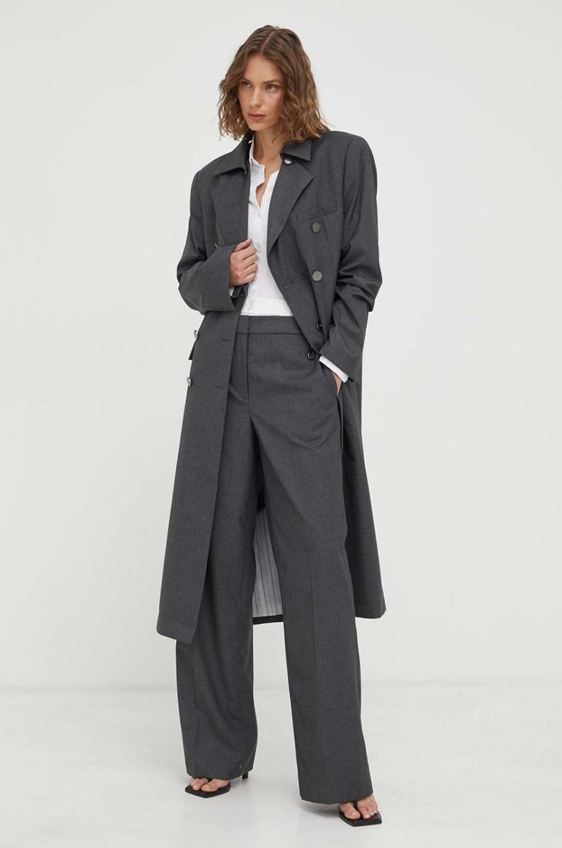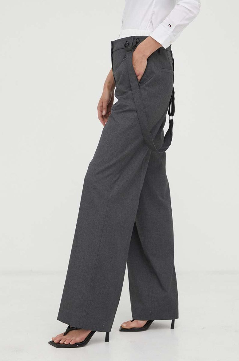 Спідниця з домішкою вовни Remain колір сірий пряме висока посадка