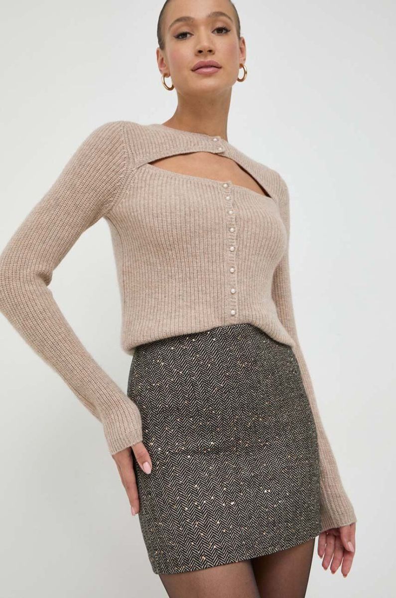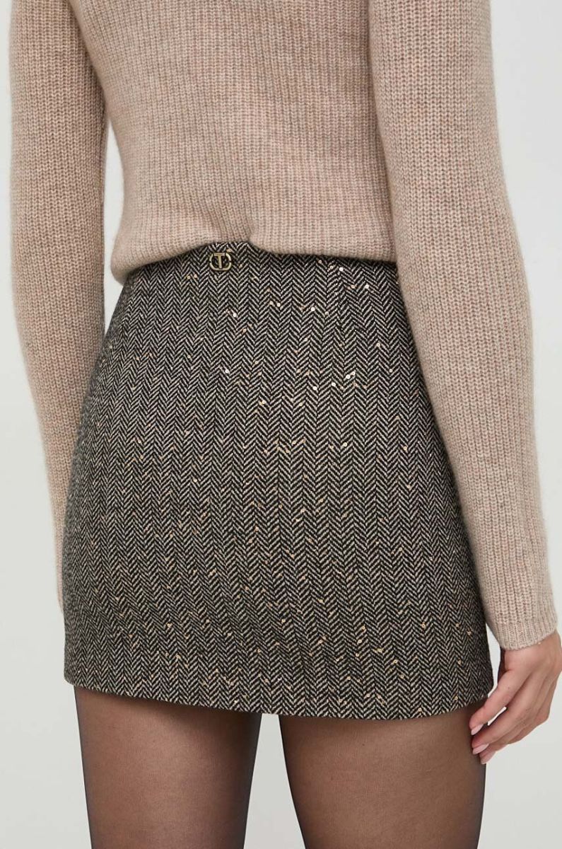 Спідниця з домішкою вовни Twinset колір коричневий mini пряма