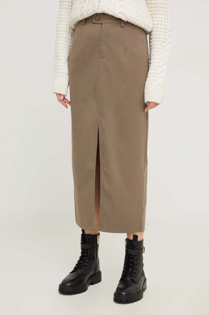 Спідниця з шерстю Answear Lab колір бежевий midi пряма