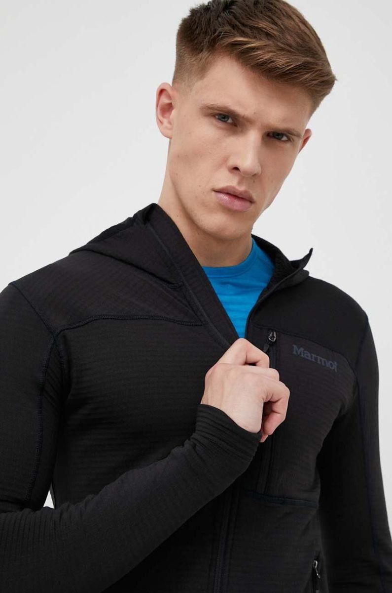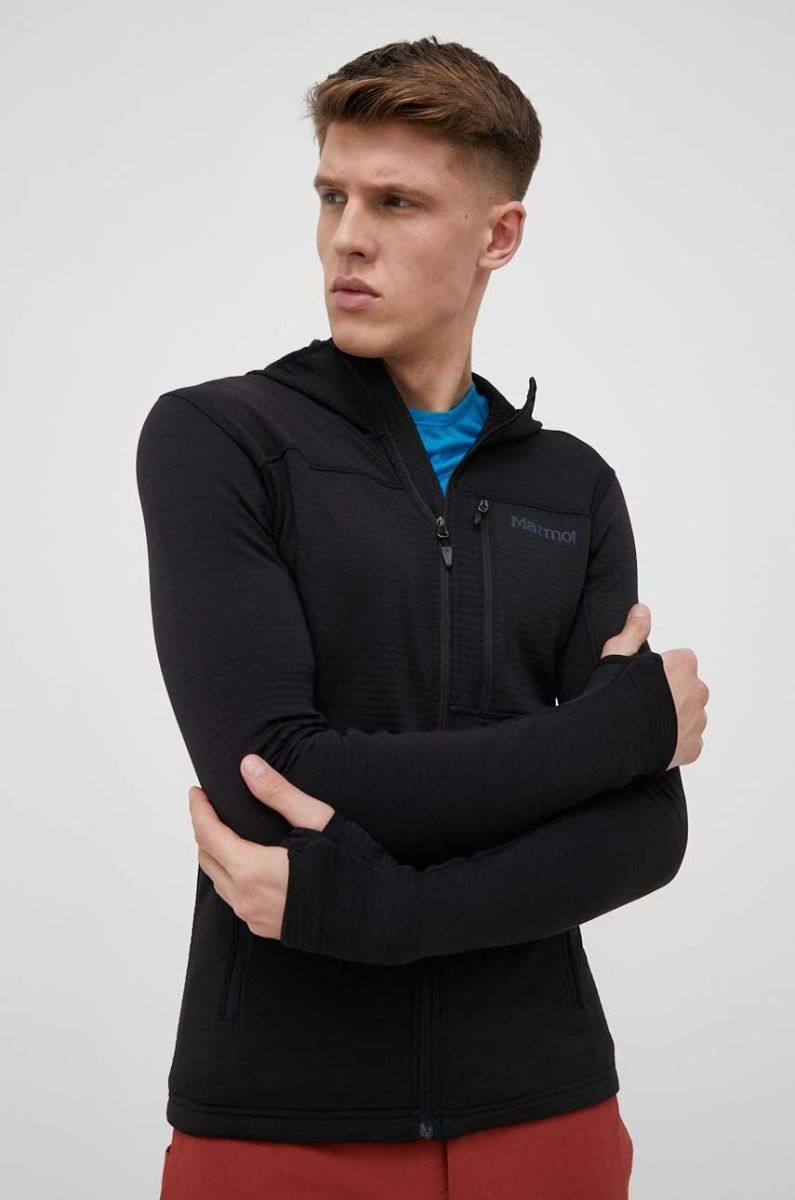 Спортивна кофта Marmot Preon колір чорний з капюшоном однотонна