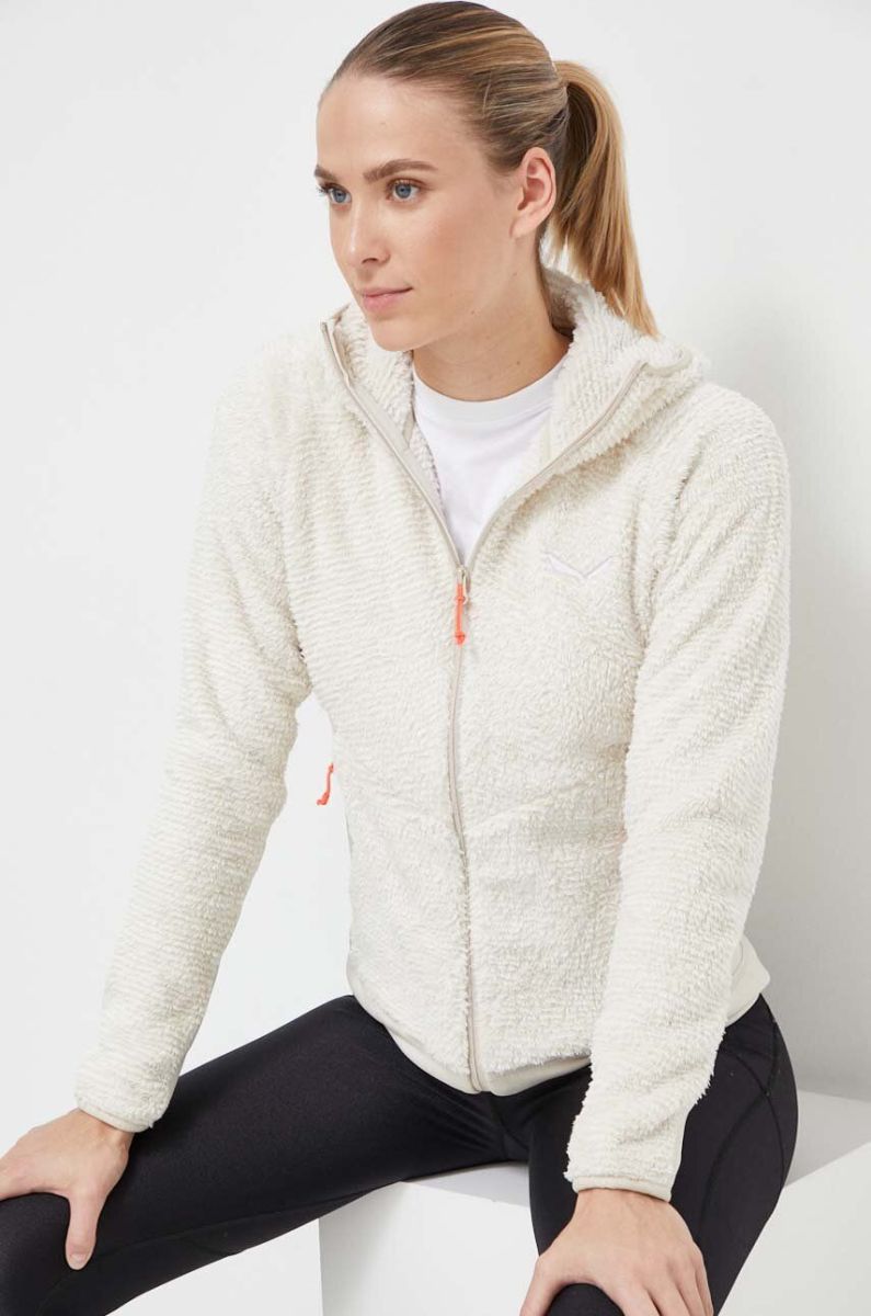 Спортивна кофта Salewa Tognazza жіноча колір бежевий з капюшоном однотонна