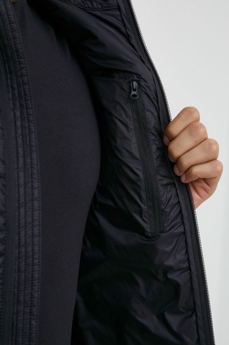 - Модель утеплена синтетичним наповнювачем, який імітує теплові властивості пуху, чудово ізолює від холоду навіть у вологому стані та забезпечує легкий догляд.
