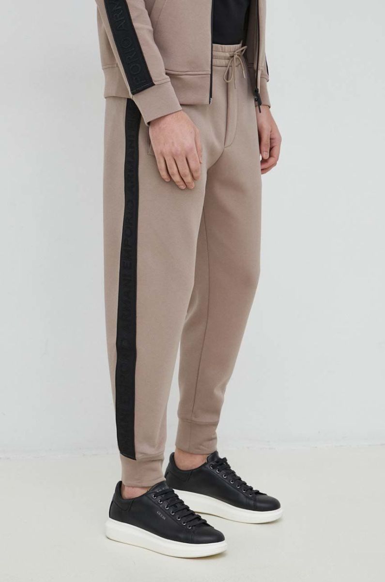 Спортивні штани Emporio Armani чоловічі колір бежевий з аплікацією