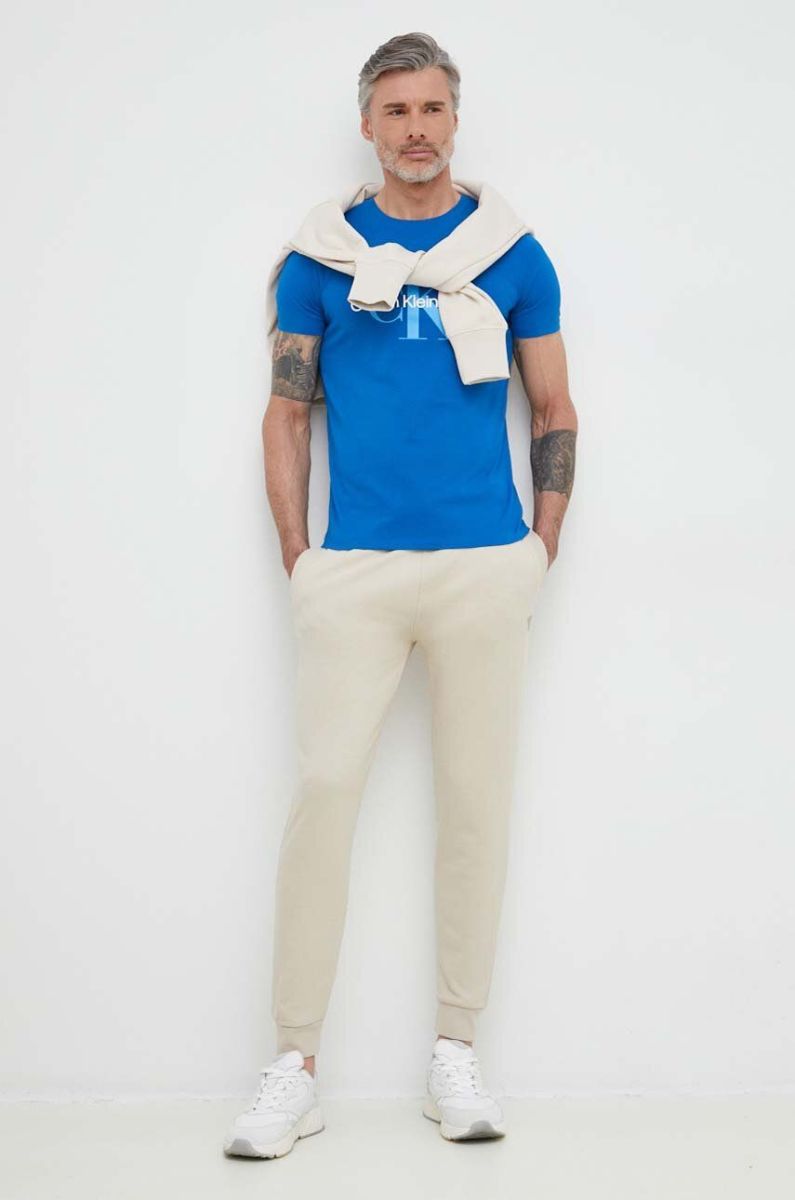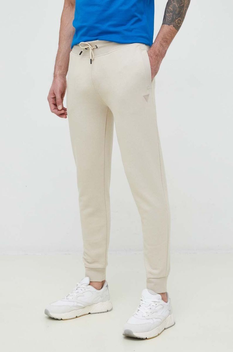 Спортивні штани Guess чоловічі колір бежевий однотонні