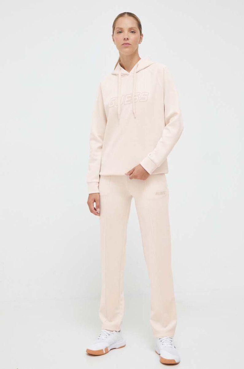 Спортивні штани Guess колір бежевий однотонні (3463237)