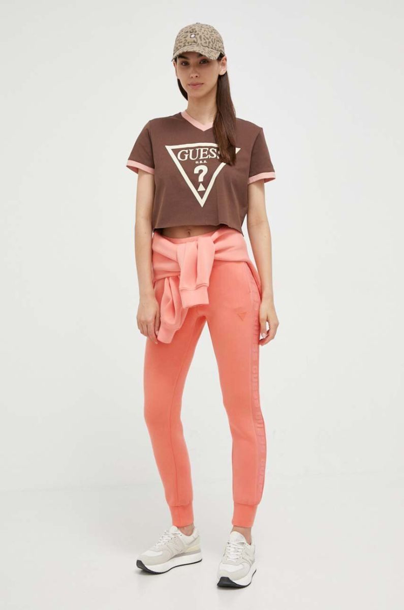 Спортивні штани Guess колір помаранчевий з принтом (3406823)
